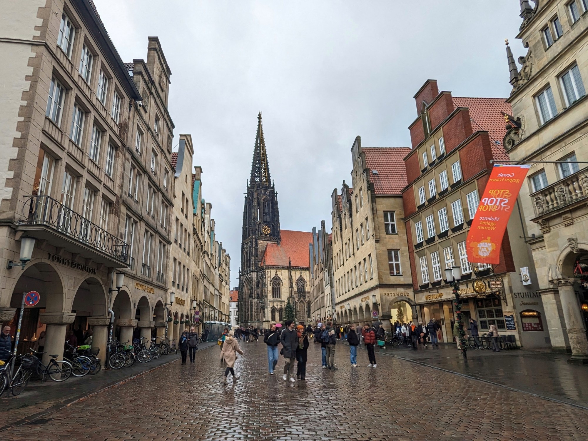 Prinzipalmarkt to najpopularniejsze miejsce na mapie miasta. Wzdłuż ulicy ciągną się imponujące, zdobione kamienice, z arkadami, kolumnami. Uwagę przykuwa Kościół św. Lamberta, a szczególnie jego wieża, na której wiszą trzy klatki. W XVI wieku umieszczono w nich szczątki trzech religijnych rebeliantów. Byli nimi anabaptyści (przedstawiciele odłamu ruchu reformacyjnego), którymi kierował Jan z Lejdy. Za wygłaszane herezje zapłacili oni najwyższy wymiar kary. Publiczne tortury wraz z drastyczną ekspozycją ofiar w centralnym punkcie miasta, miały być przestrogą dla innych.
